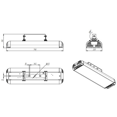 Габаритные размеры светильника, мм 790х250х255