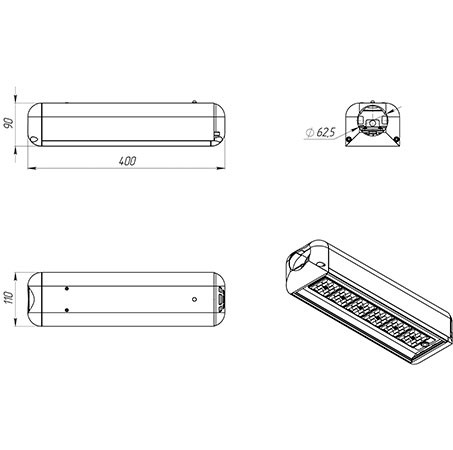 Предусмотрена возможность комплектации кронштейном для регулировки угла наклона светильника (изменяемый угол поворота до 90 градусов).