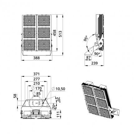 Габаритные размеры светильника, мм 513×388×239